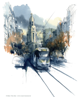 Lumière d'automne, place de l' Altitude Cent à Forest (Bruxelles) Aquarelle, 30 x 40 cm, 2016